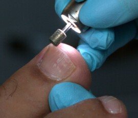 - Verdickte Nägel, Holznägel sowie Krallennägel werden mit Fräsern geschliffen.